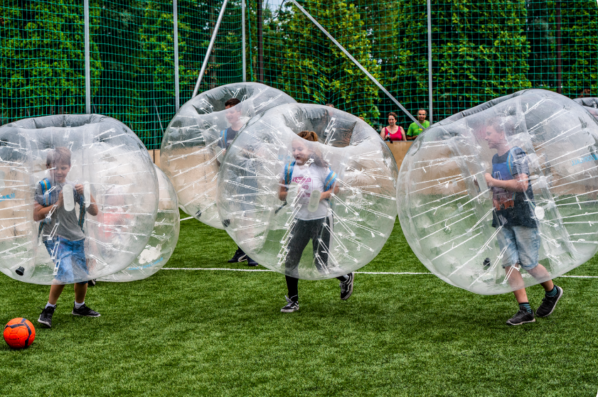 Le Bubble foot consiste en une partie de football où les joueurs se trouvent dans des bulles gonflables transparentes qui ne laissent dépasser que les jambes… Fous rires garantis !